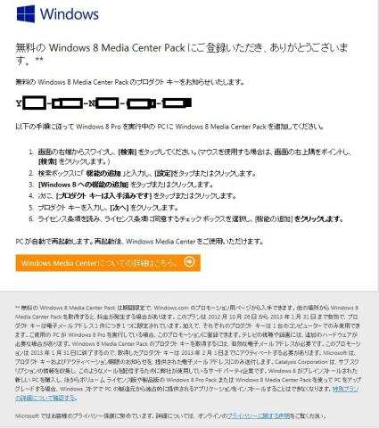 Windows 8 Media Center Pack は、期間限定で、無料で入手できます