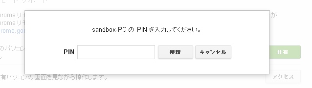 2.ダイアログが表示されるので、リモート側で設定したPINコードを入力して、接続ボタンをクリック。