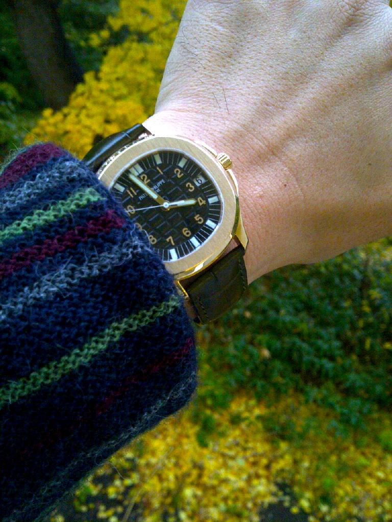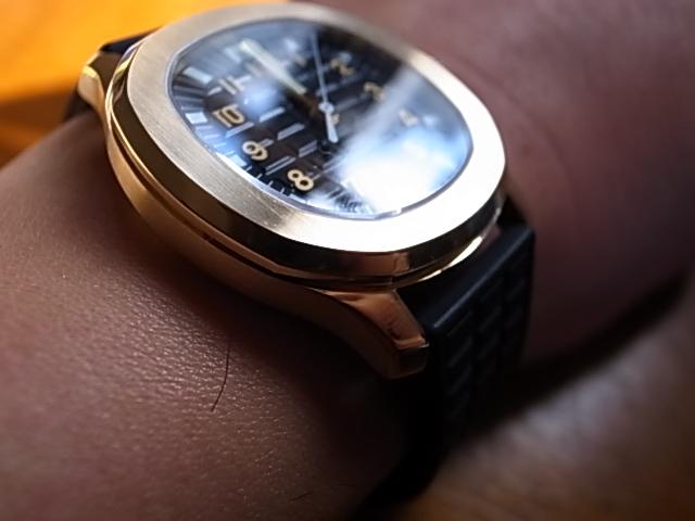 が、革ベルトのロイヤルオークYG,RGとの勝負という意味では、アクアノート初代YGに軍配が上がるような気がいたします。