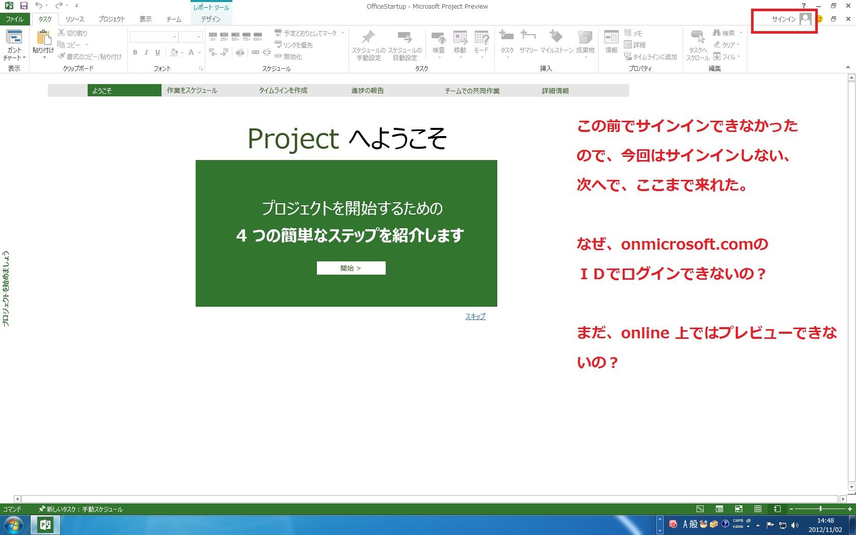 このあとで、project 2013 ではなく、 online のprojectをダウンロードするの?