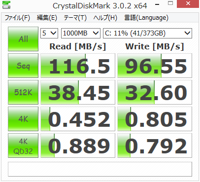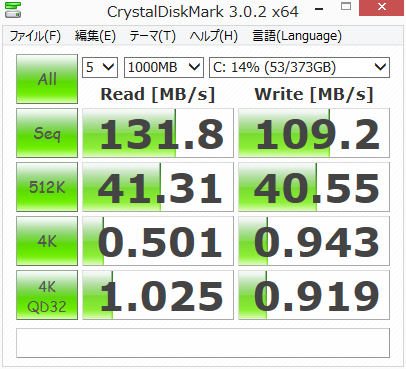 CrystalDiskMarkにてランダム:1000MBで2回計測してみた。