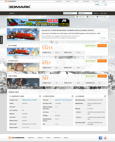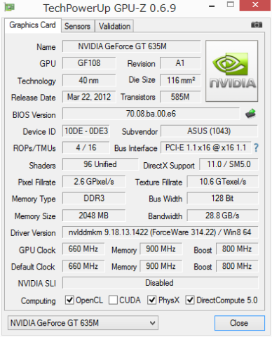 今回はGPUをGeForce GT 635Mに指定して各種3Dベンチマークで計測してみた。