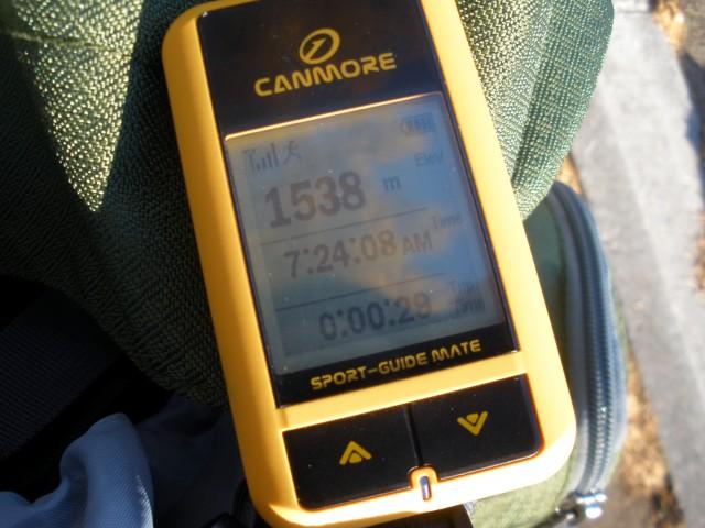 15分程度登ったところに標高の書いてある看板が立っていたので比較したところ、+9m上回りましたが、誤差の範囲でしょう。十分に使えます!!