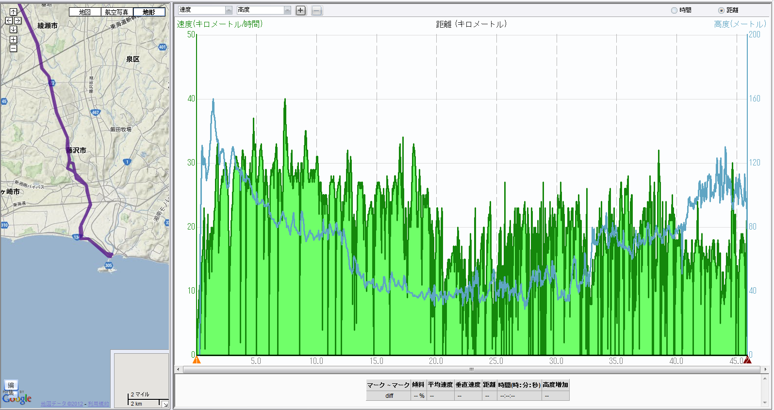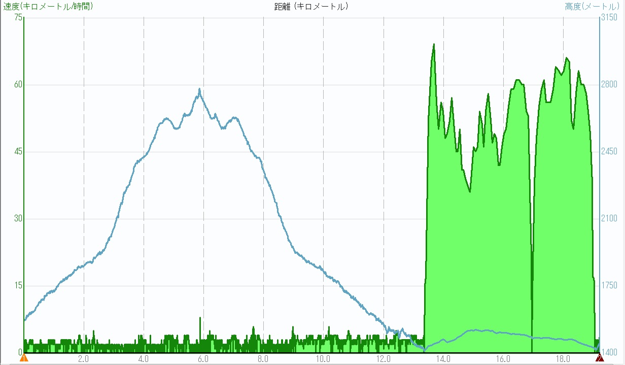 最後の緑のグラフは、下山後に電源を切りは忘れてタクシーのスピードが計測されていますw