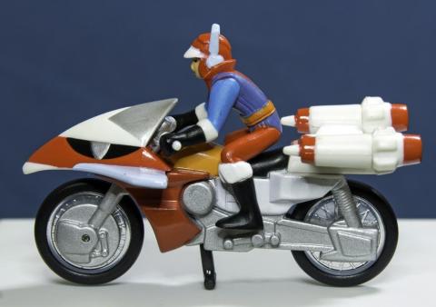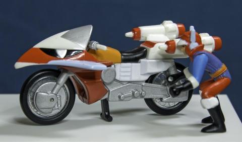 本編では、主人公がバイクに乗ったままジャンプしライディーンにフェードインしていくわけだが、フェードイン後はライディーンの腰部に収納されるという設定だったらしい。