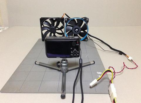 中段:ファンから15cmの距離で撮影。左のサイズ静音ファンは風のムラが強く・・・