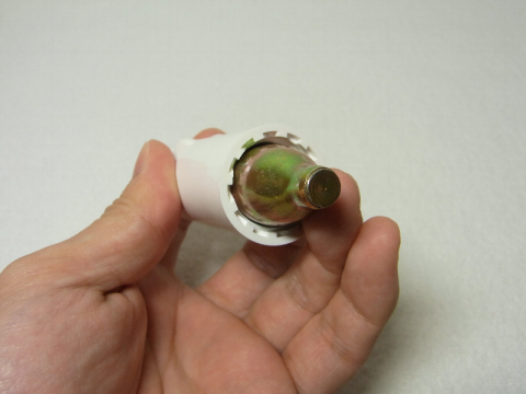 頭の部分を回すと炭酸カートリッジをセットするホルダー部分が外れる。