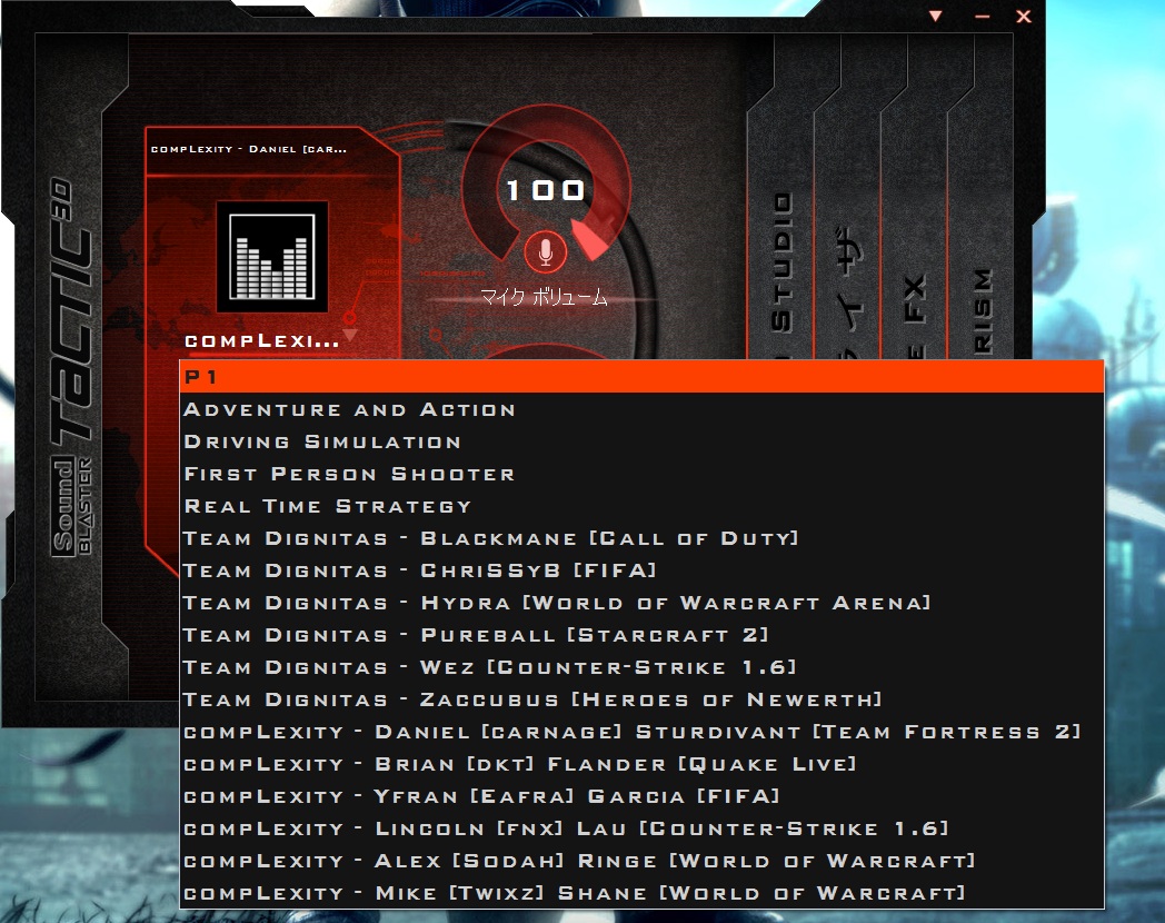 それではSound Blaster Tactic(3D)というアプリケーションを起動