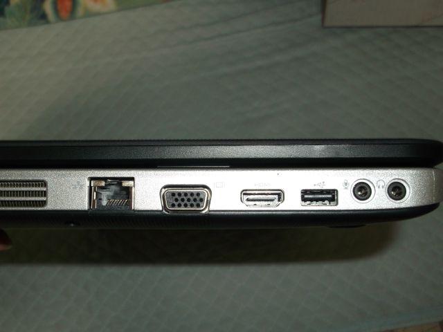 左から「CPU熱の排気口」 「LAN」「D-sub」「HDMI」「USB 2.0」「マイク」「ヘッドフォン」になります。