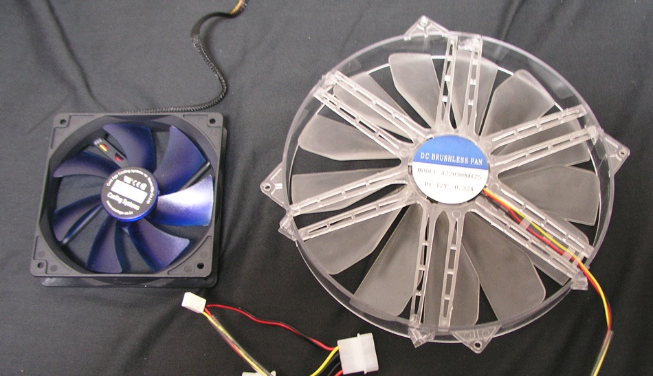 12センチファンとの比較写真。12センチファンが小型に見えるレベルです。