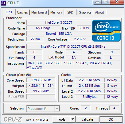 Ivy Bridge世代の”Intel CPU Core I3-3220T”です。