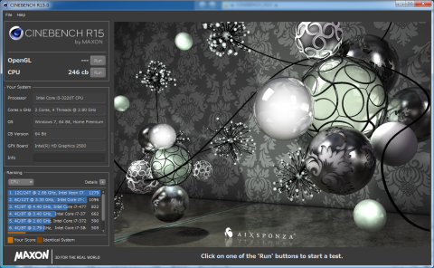 CINEBENCH R15のスコアは246。