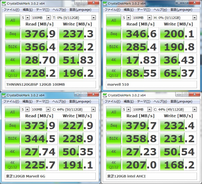 またPCIe接続ならではのドライバの違い(Marvell,intel純正AHCI)でも比較してみた。