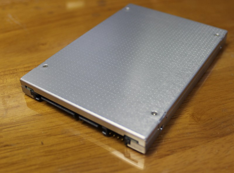 東芝SSDの特徴なのか、とてもシンプルな表面。というか(SATAポートが見えない方うを表とするなら)表は無地。intel製SSDと同じく、Voidシールは貼られていない様だ。