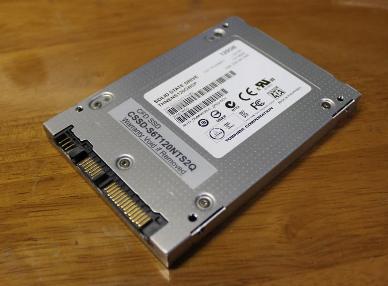 初めて手にしたSSDも東芝製、さらにdynabookのハイエンド機に搭載されている他はIO-DATA販売などリテールパッケージで売られ、性能はいいと言われながらも自作市場では細々感のある東芝SSDが8100円!と、その場で調べた「諸々東芝製」という構成と「遅くはないらしい」という実性能、さらにM4等と比べてもあまり変わらない値段(120GBで8100円)を考えて、スッと店員さんに声をかけてしまった。