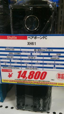 するとなると、ベアボーンで14800円、CPUで6580円、デスクトップ用DDR3メモリが4GB×2枚で5000円、キーボードが1000~2000円…