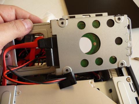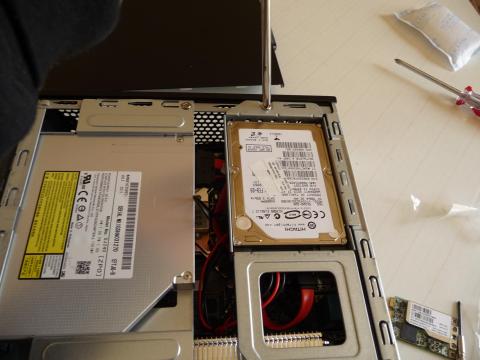 写真ないけど、メモリつけて、ドライブをベイに付けて、SATAケーブル付けてベイを固定。