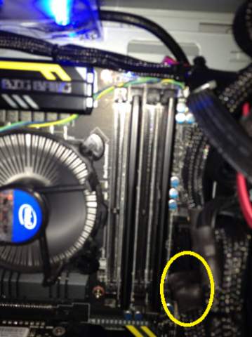 それなりに長く使っていたメモリーのヒートシンクの背が高く、電源のケーブルに干渉していました。