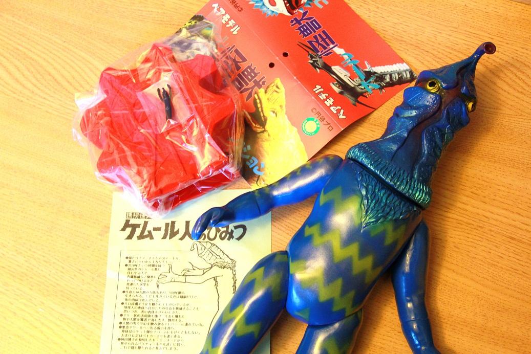 赤い観覧車と無くしてしまいそうなくらい小さな巨大化前のケムール人がオマケのこのソフビは、なかなか売りに出されないもののようである。