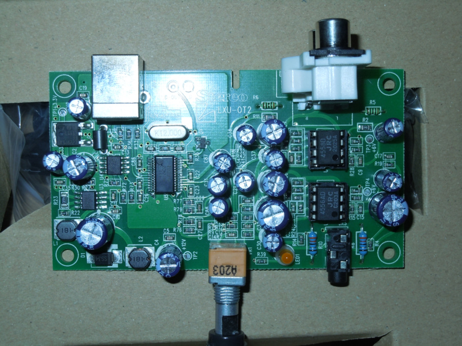 定番のTI PCM2704によるUSB-DAC + ライン出力用のバッファアンプとして、デュアルチャネルOPAMP 4558、ヘッドフォン出力に 4556ADを使ったヘッドフォンアンプです。