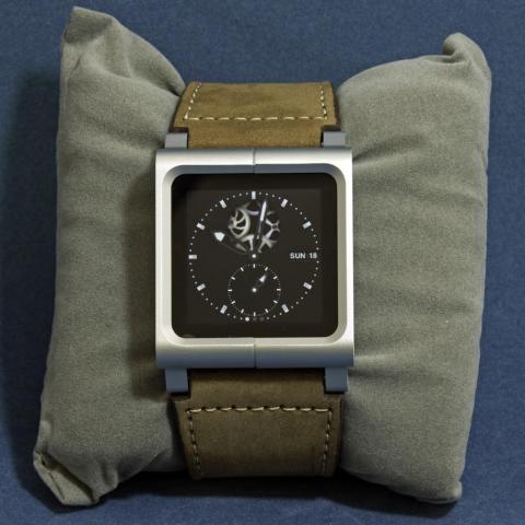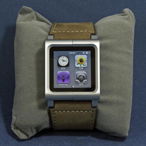 第6世代 iPod nanoを腕時計化するキット LunaTikの革バンドバージョンです。