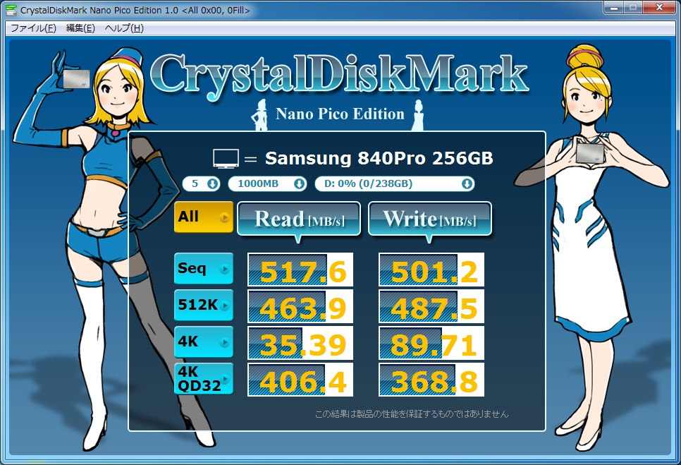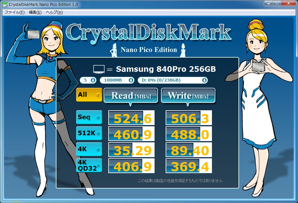 記録速度が500MB/S超のSamsung840シリーズで