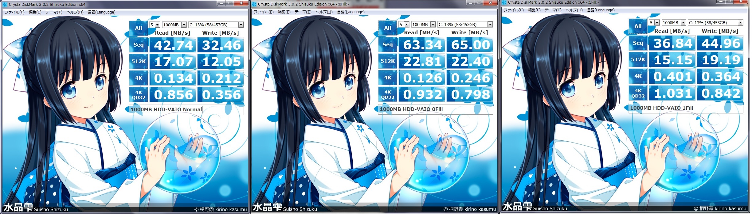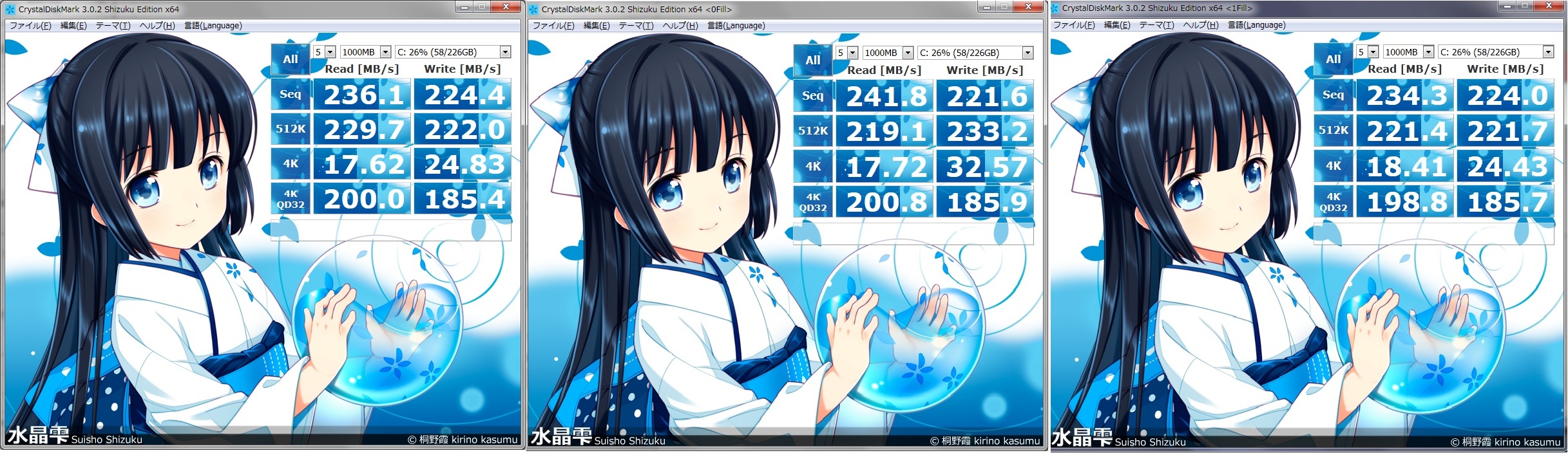 とりあえず、Crystal Disc Mark(Shizuku Ver)で速度を測ってみました。