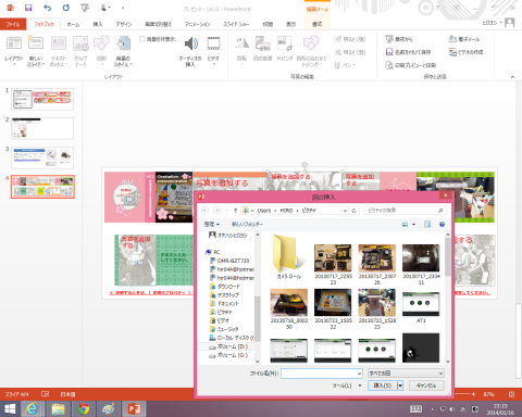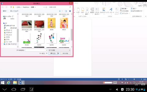 インターネットから画像を探したり、SkyDriveからも挿入が簡単です。