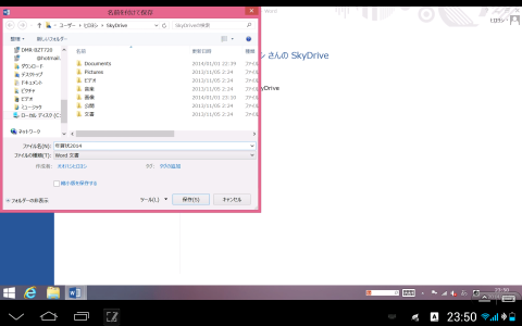画像ですがクラウドストレージのSkyDriveも選択できます。