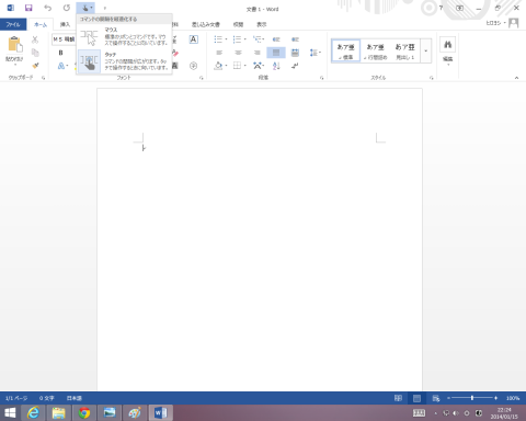 新しいOffice2013ですがコマンドパネルをタッチ操作向けに変更できるようになりました。
