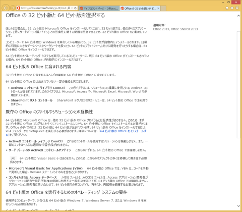 通常は、micorosoftも推奨している32bit版を使用しましょう。