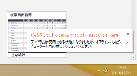 Microsoft アカウントを使って Office をインストールすると、SkyDriveを使用した共有機能がすぐに利用できます。