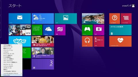 シャットダウンやコントロールパネル等のお馴染みの機能が