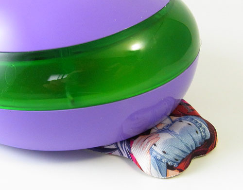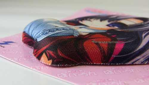 更に驚くべき事に素材はほぼ通常のおっぱ○マウスパッドと同じもの。キャラクターがプリントされた表面は布が使用され、背面は黒い滑り止め素材(通常サイズほどの粘着力は無いが)。