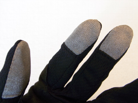 親指、人差し指、中指の先端にはスマートフォンの操作ができる特殊素材が使われている。