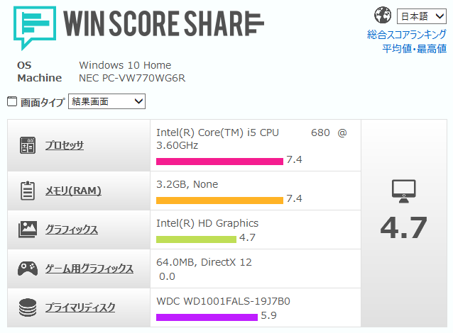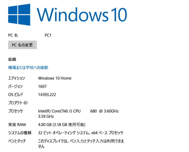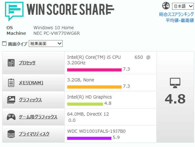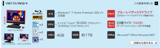 ・CPU名称:インテル(R) Core(TM) i5-650 プロセッサー
