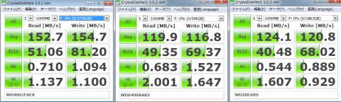 やや世代遅れのWD6400AAKSが一番遅い結果に。