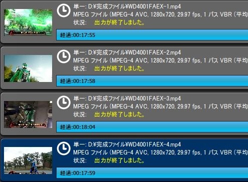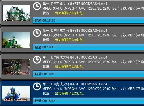 ・TS⇒mpegへとスマートレンダリング出力したファイル×4をmp4へ同時エンコード