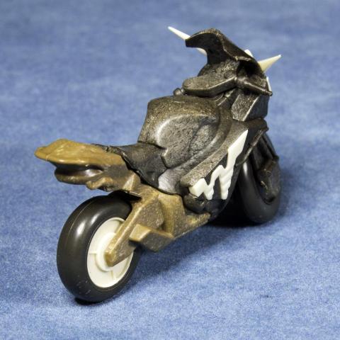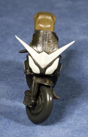 「GRAINIC MOLDING」という異なる2色の樹脂を混合・成形し、木目風の流れ模様を再現する技術を使用し作られた歴代仮面ライダーのバイクです。