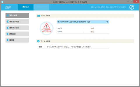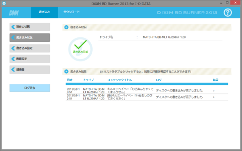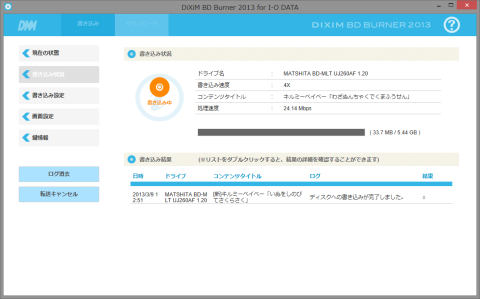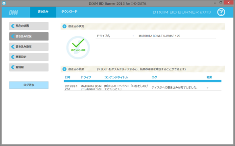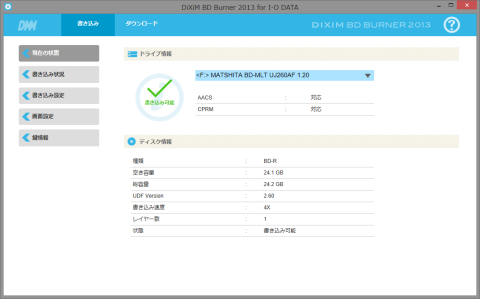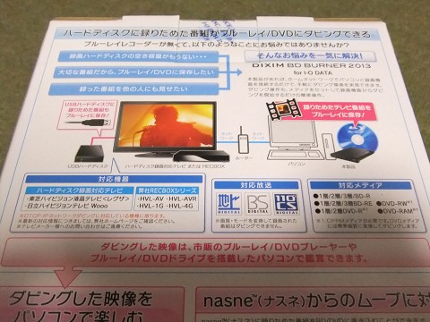 今回のポータブルBDドライブは付属するソフトウェア「DiXiM BD Burner 2013 for I-O DATA」