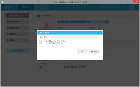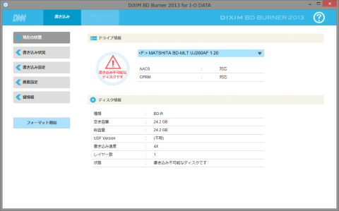 ドライブに付属しているDiXiM BD Burner 2013は動作しません。それ以前にBD記録