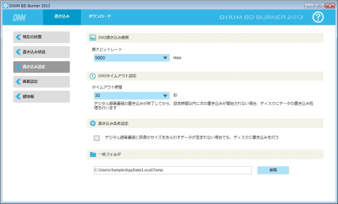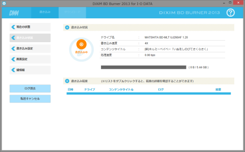 DiXiM BD Burnerに進行中のステータスが表示されます。