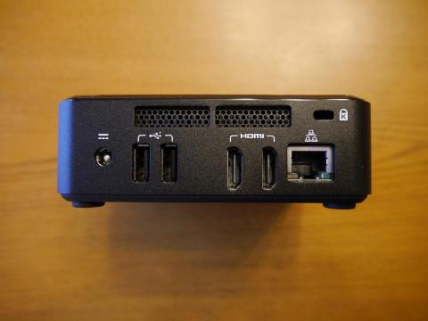 NUC背面には、HDMIポートを2基、USB2.0ポートが2基あります。