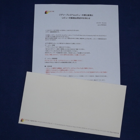 '13.1/18の選出連絡の際に商品発送の遅れが告知されていて、1週間後の1/25に