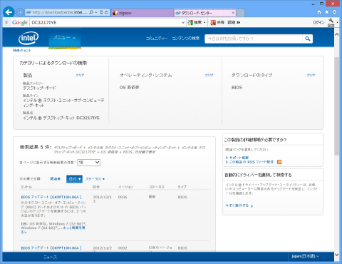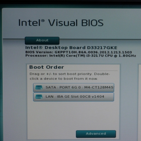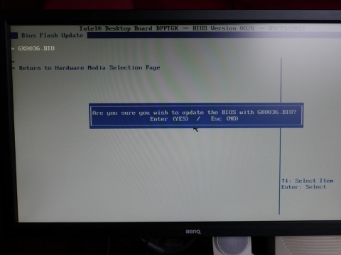 あらかじめインテルHPより最新Bios「0036」をDLし、