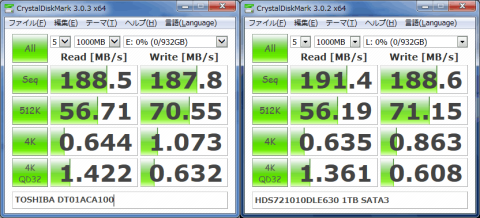 東芝扱いの3.5インチ1TBハードディスク。その実態は、コンシューマ向けモデルとして真っ先に1TBプラッタを採用したHGSTの「7K1000.D」の同等品。なので下記レビューをごらんいただいてもだいたいコレの内容。