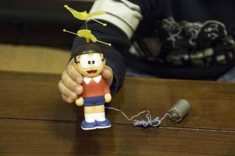 「ドラえもん ふしぎのサイエンス」全巻購読を申し込むことによりもらえる、創刊号で付録だった手回し発電タケコプターののび太バージョンです。