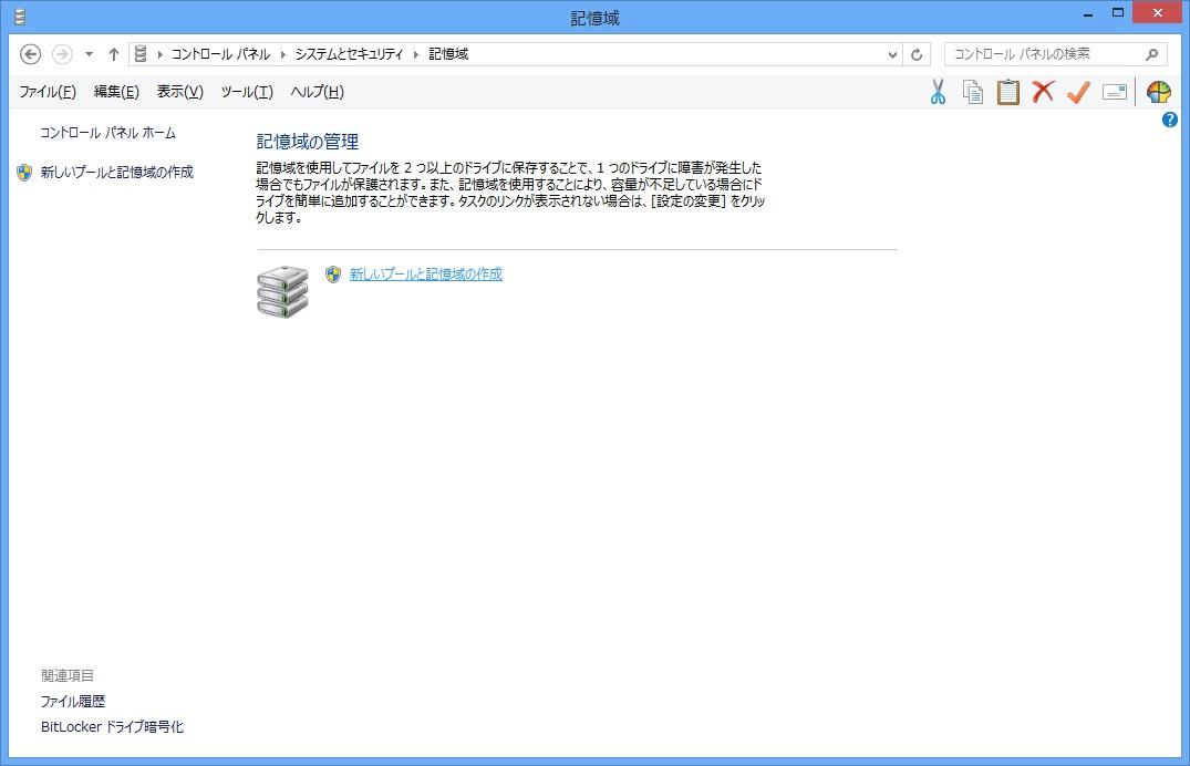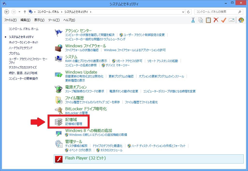 → システムとセキュリティ → 記憶域 をクリックします。