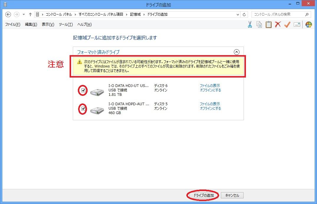 ・ドライブの追加は簡単だが、指定したドライブだけの削除には