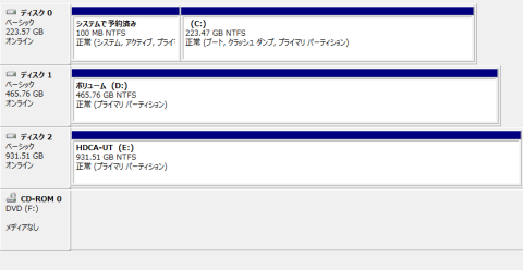 とりあえず、無効にした① 3TBディスクを有効にして、通常の状態に戻しました。